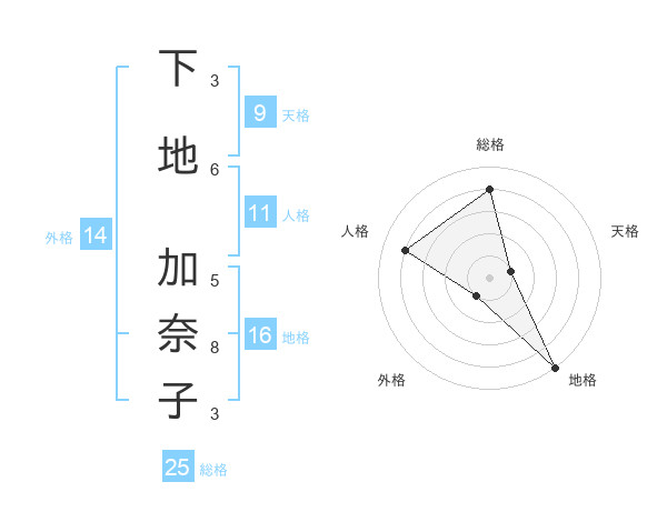 下地 加奈子さんの総格は25画の4点!
