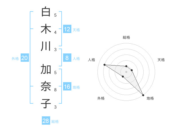 白木川 加奈子さんの総格は28画の1点!
