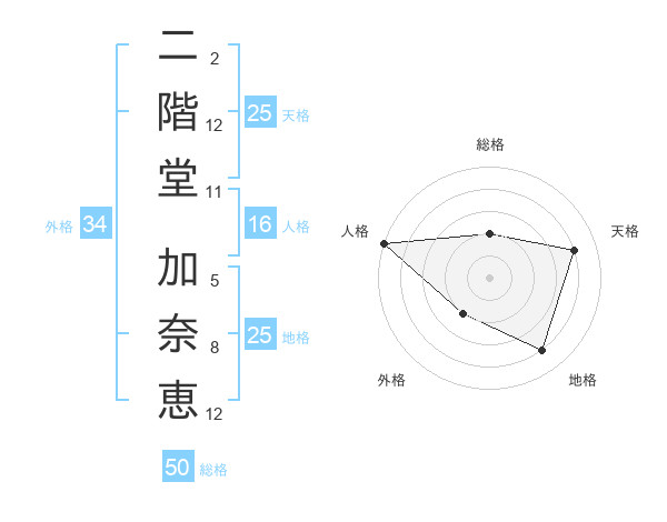 二階堂 加奈恵さんを姓名の画数から五運を鑑定