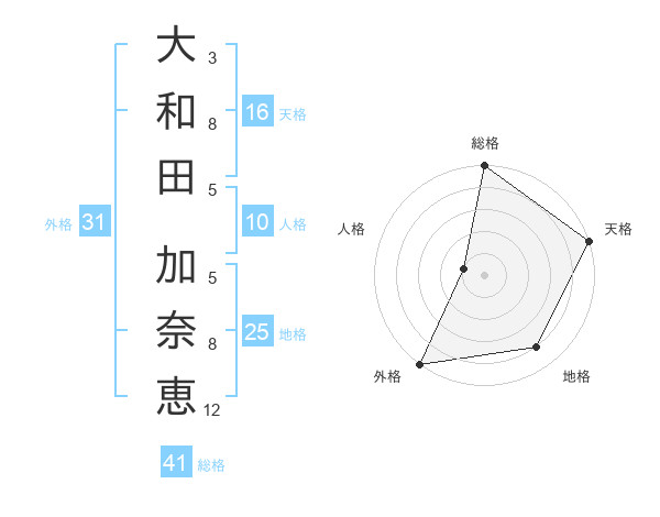 大和田 加奈恵さんを姓名の画数から五運を鑑定