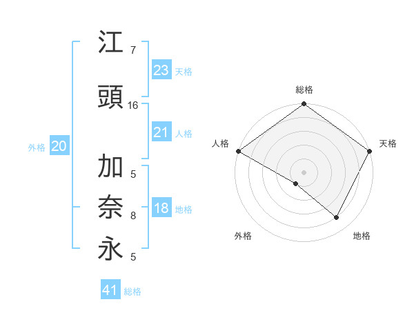江頭 加奈永さんを姓名の画数から五運を鑑定