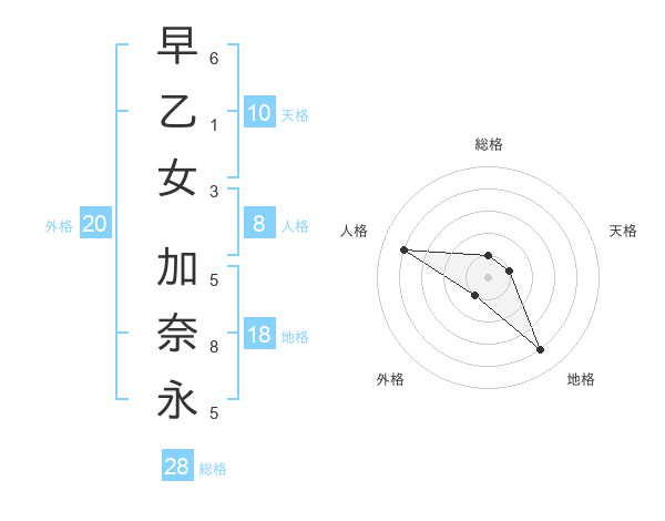 早乙女 加奈永さんの総格は28画の1点!