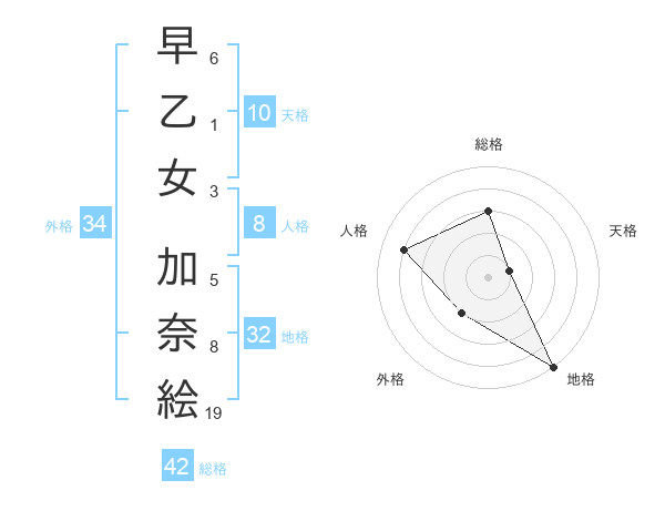 早乙女 加奈絵さんを姓名の画数から五運を鑑定