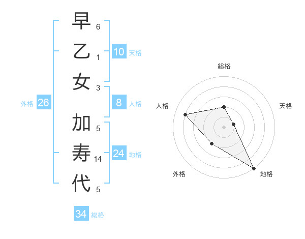 早乙女 加寿代さんを姓名の画数から五運を鑑定