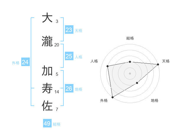 大瀧 加寿佐さんの総格は49画の2点!