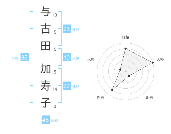 与古田 加寿子さんを姓名の画数から五運を鑑定