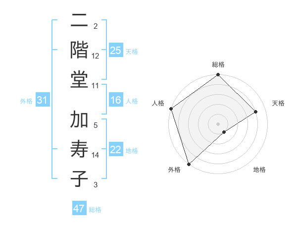 二階堂 加寿子さんを姓名の画数から五運を鑑定