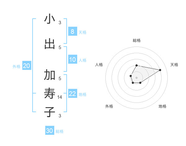 小出 加寿子さんを姓名の画数から五運を鑑定