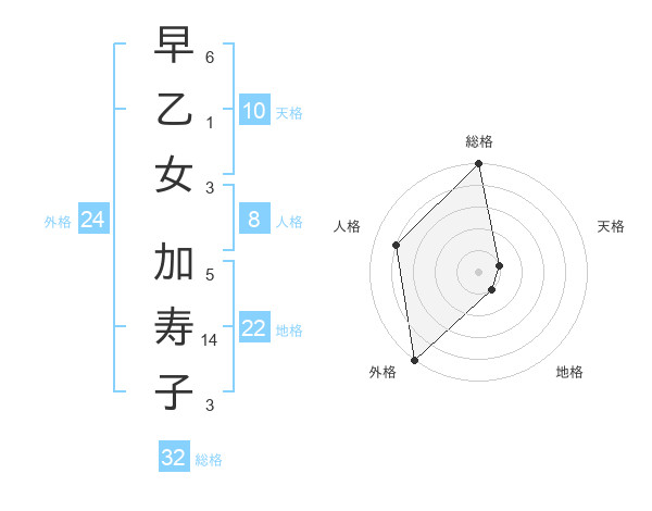 早乙女 加寿子さんを姓名の画数から五運を鑑定