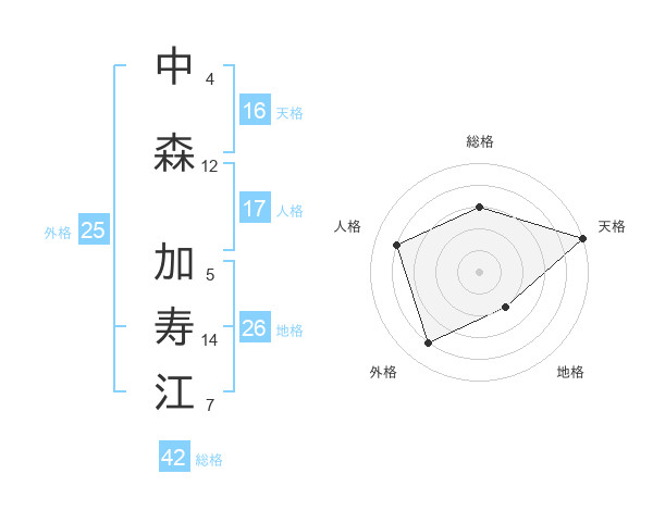 中森 加寿江さんの天格は16画の5点!
