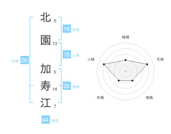 北園 加寿江さんの総格は44画の2点!