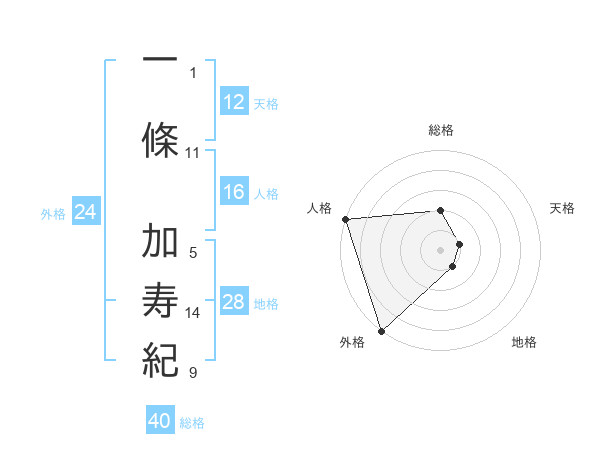 一條 加寿紀さんの外格は24画の5点!