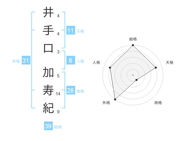 井手口 加寿紀さんを姓名の画数から五運を鑑定