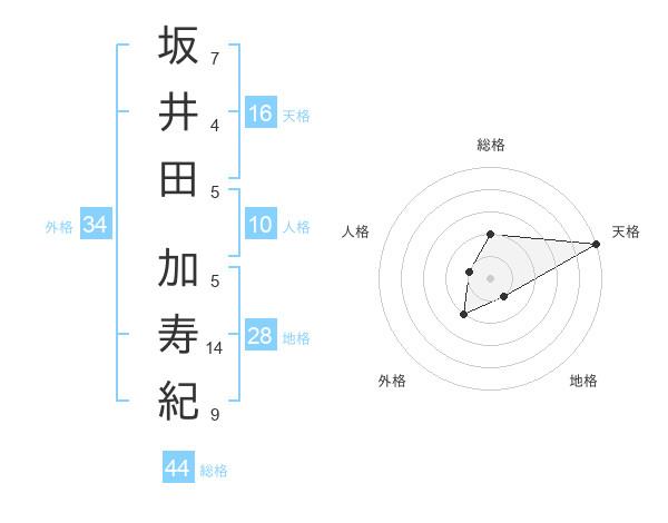 坂井田 加寿紀さんを姓名の画数から五運を鑑定