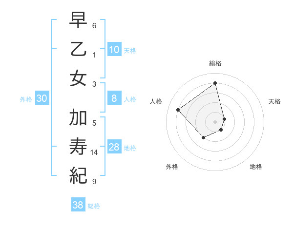 早乙女 加寿紀さんの総格は38画の4点!
