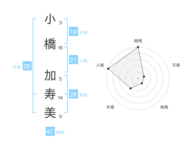 小橋 加寿美さんを姓名の画数から五運を鑑定