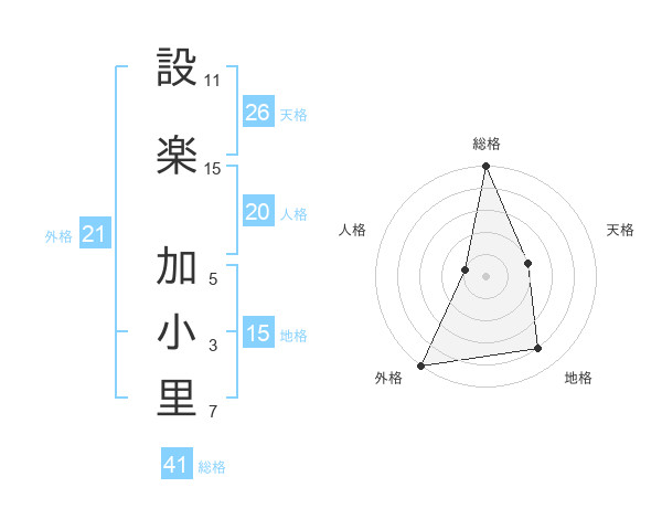 設楽 加小里さんを姓名の画数から五運を鑑定