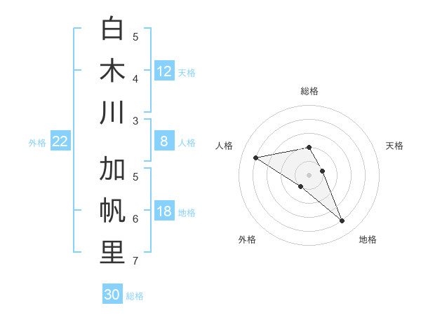 白木川 加帆里さんの外格は22画の1点!