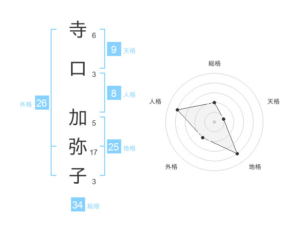 寺口 加弥子さんの総格は34画の2点!