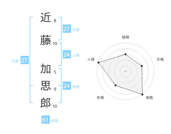 近藤 加思郎さんを姓名の画数から五運を鑑定