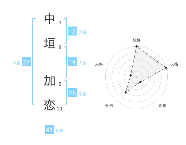 中垣 加恋さんの総格は41画の5点!