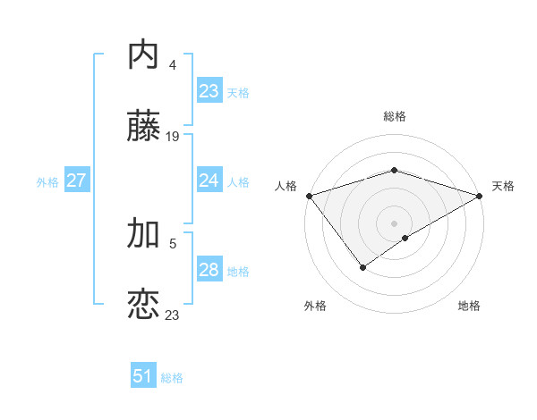 内藤 加恋さんを姓名の画数から五運を鑑定