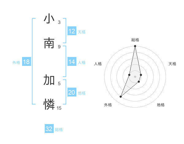 小南 加憐さんの総格は32画の5点!