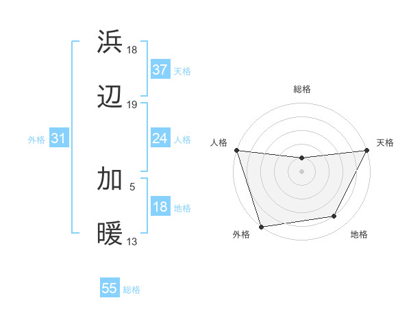 浜辺 加暖さんの総格は55画の1点!