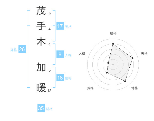 茂手木 加暖さんを姓名の画数から五運を鑑定