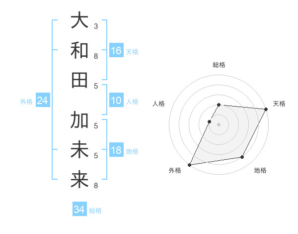 大和田 加未来さんの天格は16画の5点!