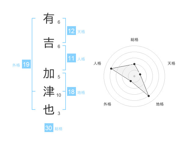 有吉 加津也さんの総格は30画の2点!