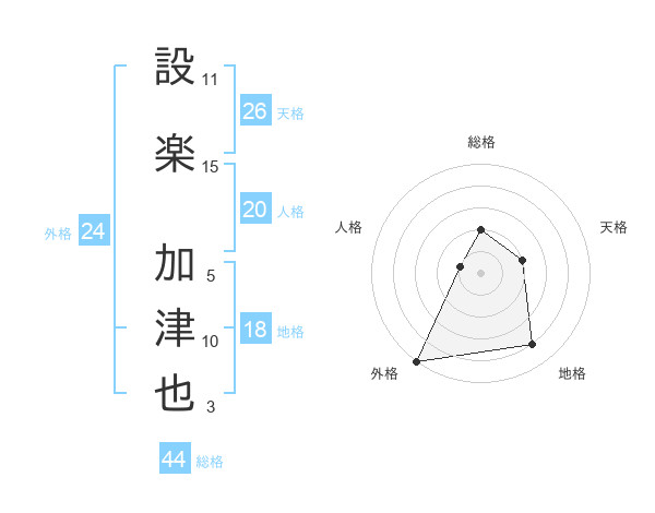設楽 加津也さんの天格は26画の2点!