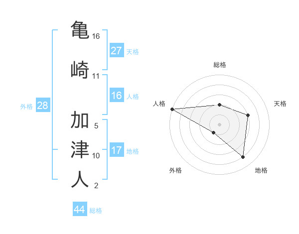 亀崎 加津人さんの総格は44画の2点!