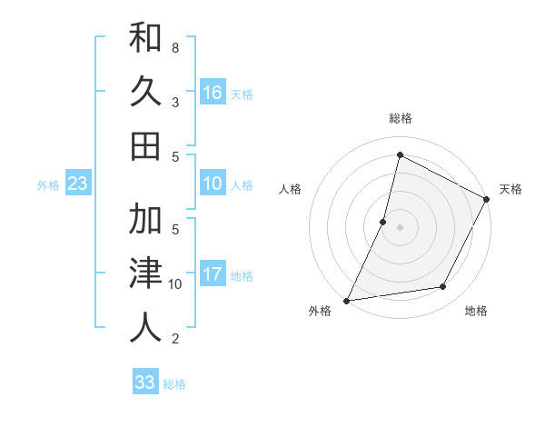 和久田 加津人さんを姓名の画数から五運を鑑定