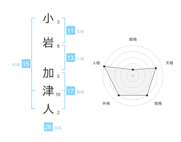 小岩 加津人さんの総格は28画の1点!