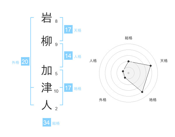 岩柳 加津人さんの天格は17画の4点!