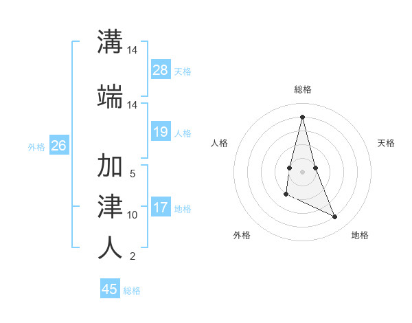 溝端 加津人さんの総格は45画の4点!
