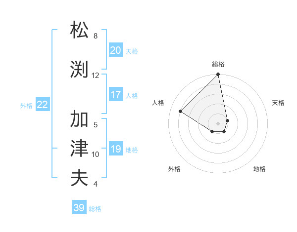 松渕 加津夫さんの総格は39画の5点!