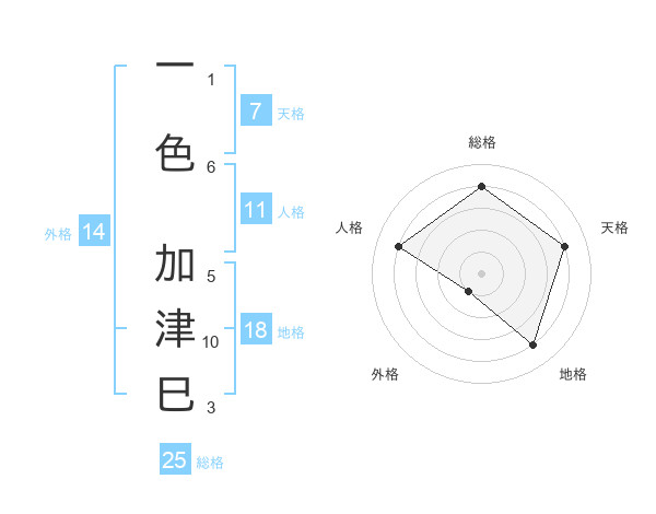 一色 加津巳さんを姓名の画数から五運を鑑定