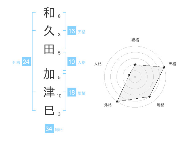 和久田 加津巳さんを姓名の画数から五運を鑑定