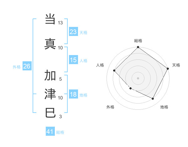 当真 加津巳さんの天格は23画の5点!
