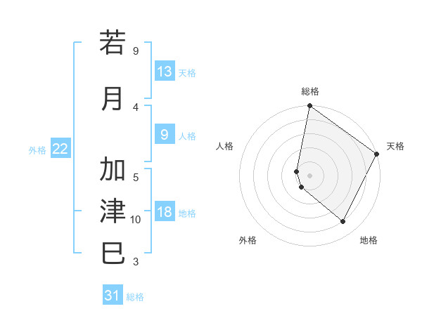 若月 加津巳さんの総格は31画の5点!