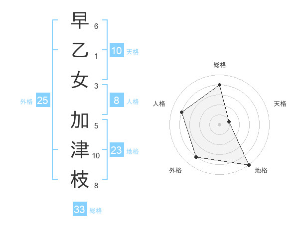 早乙女 加津枝さんを姓名の画数から五運を鑑定