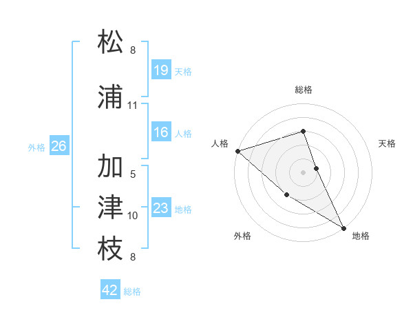 松浦 加津枝さんを姓名の画数から五運を鑑定