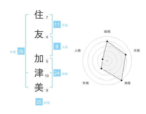 住友 加津美さんの天格は11画の4点!