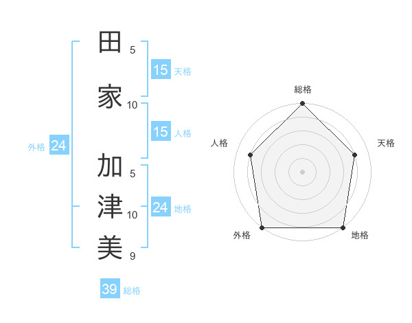 田家 加津美さんの総格は39画の5点!