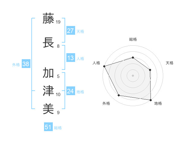藤長 加津美さんの外格は38画の4点