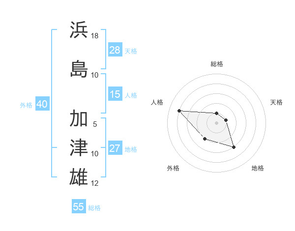 浜島 加津雄さんを姓名の画数から五運を鑑定