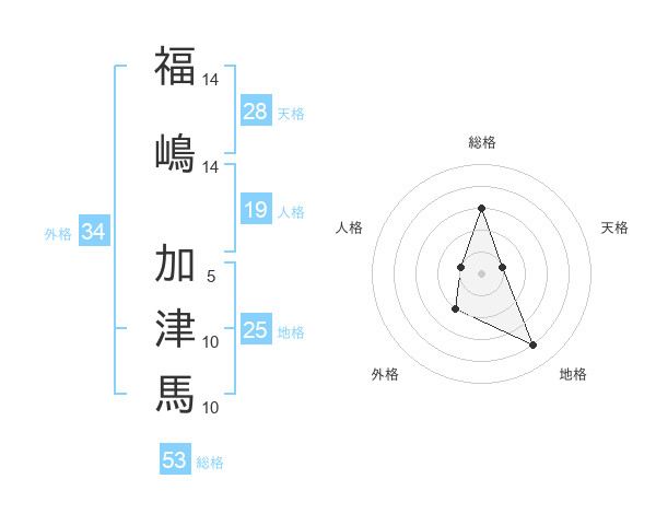 福嶋 加津馬さんを姓名の画数から五運を鑑定