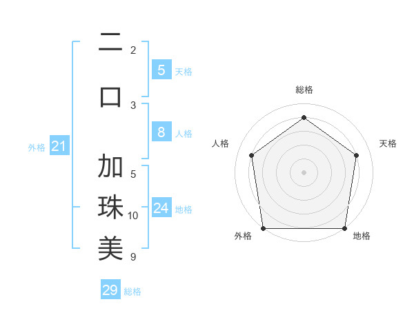 二口 加珠美さんの総格は29画の4点!